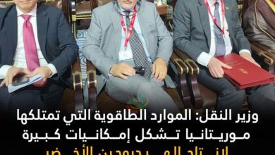 وزير النقل: الموارد الطاقوية التي تمتلكها موريتانيا تشكل إمكانيات كبيرة لإنتاج الهيدروجين الأخضر