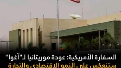 السفارة الأمريكية: عودة موريتانيا لـ”آغوا” ستنعكس على النمو الاقتصادي والتجارة: قالت السفارة الأمريكية لدى نواكشوط إن عودة موريتانيا ضمن قائمة…