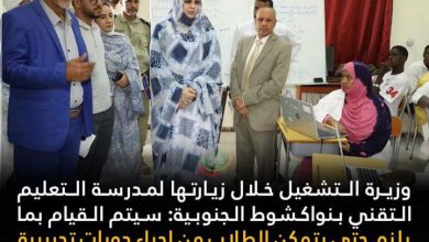 قالت وزيرة التشغيل والتكوين المهني، زينب منت أحمدناه خلال زيارتها اليوم لمدرسة التعليم التقني والتكوين المهني لتكنولوجيا المعلومات والاتصالات بولاية…