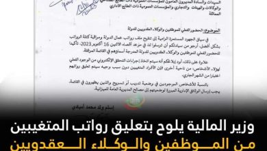 أصدر وزير المالية إسلم ولد محمد امبادي تعميما موجها لأعضاء الحكومة ومن في رتبتهم والمديرين العامين يتضمن تأكيد الحضور الفعلي…
