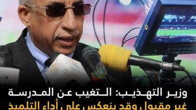 وزير التهذيب: التغيب عن المدرسة غير مقبول وقد ينعكس على أداء التلميذ: شدد وزير التهذيب الوطني وإصلاح النظام التعليمي المختار…