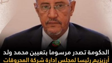 الحكومة تصدر مرسوما بتعيين محمد ولد أرزيزيم رئيسا لمجلس إدارة شركة المحروقات: أصدرت الحكومة الموريتانية اليوم الخميس مرسوما يتم بموجبه…
