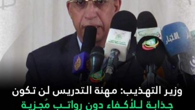 قال وزير التهذيب الوطني وإصلاح النظام التعليمي المختار ولد داهي إن « مهنة التدريس لن تكون جذابة للأكفاء المخلصين من…