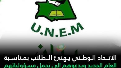 الاتحاد الوطني يهنئ الطلاب بمناسبة العام الجديد ويدعوهم إلى تحمل مسؤولياتهم: هنأ الاتحاد الوطني لطلبة موريتانيا الطلاب بمناسبة العام الجديد…