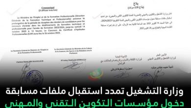 وزارة التشغيل تمدد استقبال ملفات مسابقة دخول مؤسسات التكوين التقني والمهني أعلنت وزارة التشغيل والتكوين والمهني (المديرية العامة للتكوين التقني…
