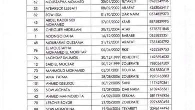 كشفت الشركة الوطنية للصناعة والمناجم “Snim” عن لائحة المقبولين للتكوين في شهادة فني عالي بمعهد التكوين التقني بازويرات على إثر…