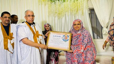 سلم وزير الصحة السيد المختار داهي، لرئيسة جهة نواكشوط السيدة فاطمة عبد المالك، شهادة تكريمية مقدمة من طرف الاتحاد العام…