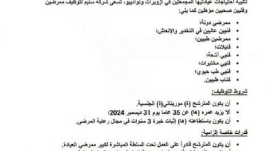 لتلبية احتياجات عيادتيها المجمعتين في ازويرات ونواذيبو، تسعى شركة سنيم لتوظيف ممرضين وفنيين صحيين مؤهلين كما يلي: • ممرضي دولة؛…